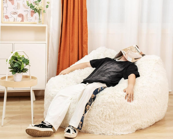 Adult bean bag chair: memory foam filling, soft faux fur, for living room/bedroom.