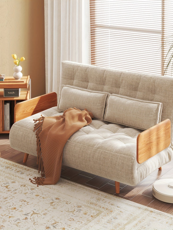1 Modern And Linen Convertible Sofa Bed With 5 Adjustable Backs, Adjustable Height Pillows - Living Room Recliner, Single Or Double Use, Living Room Furniture Sofa | Neutral Home Decor | Wood Frame Sofa