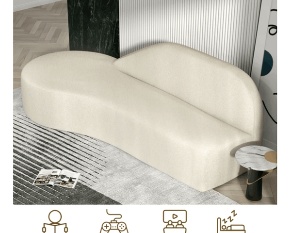 Modern curved cream sectional: plush, with storage, minimalist for small spaces/home theater.
