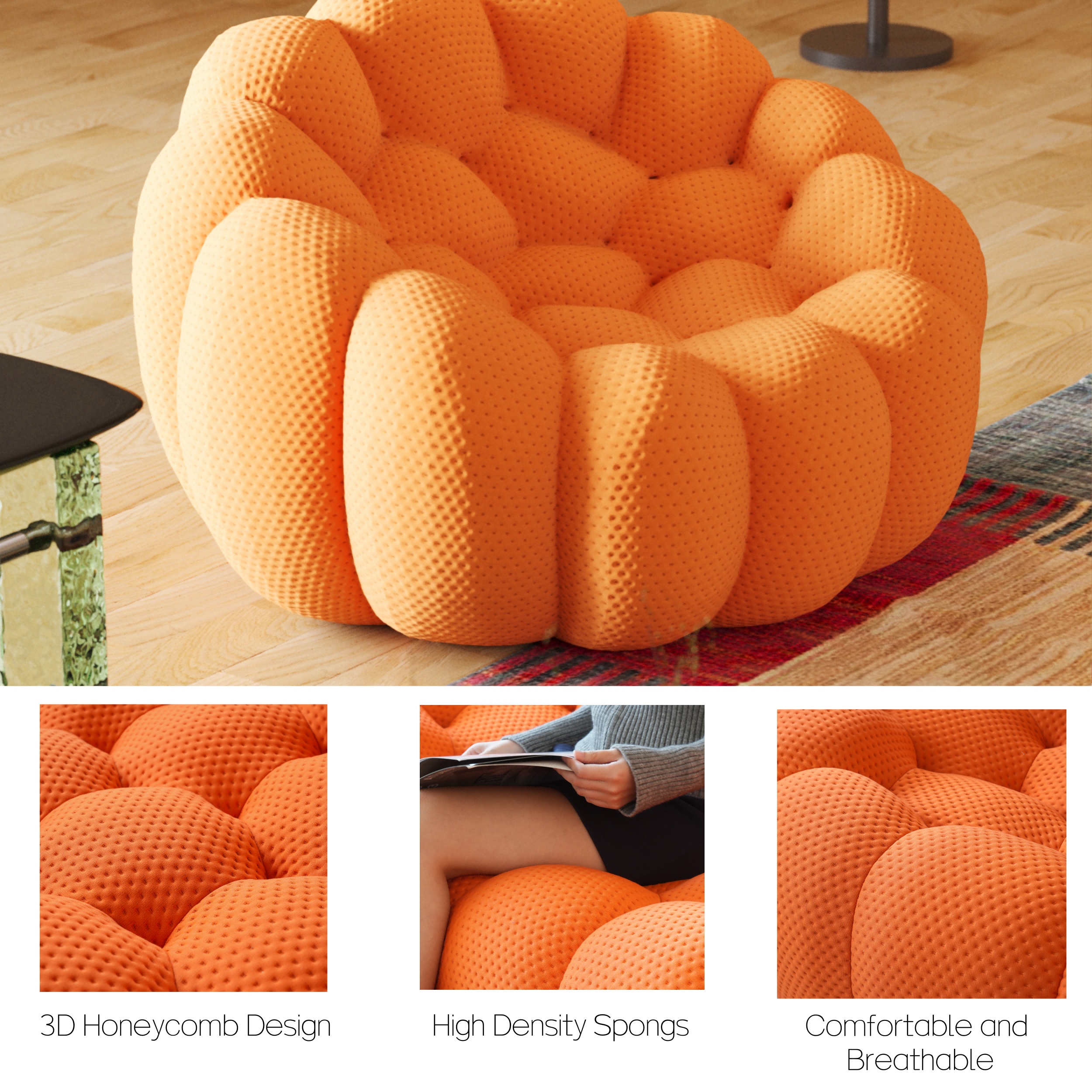 Comfy Upholstered Sofa, Mesh Fabric Floor Sofa, 3D Honeycomb Shape Modern Couch For Living Room, Office, Apartment