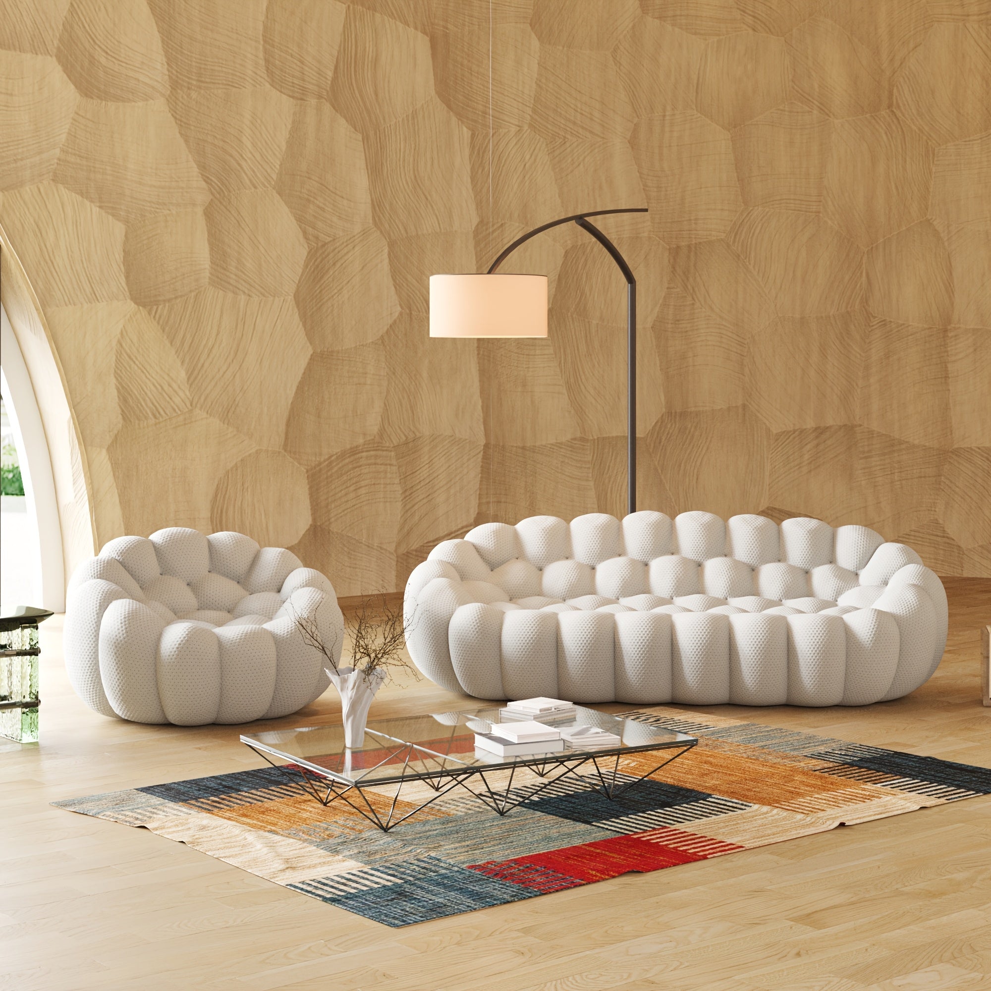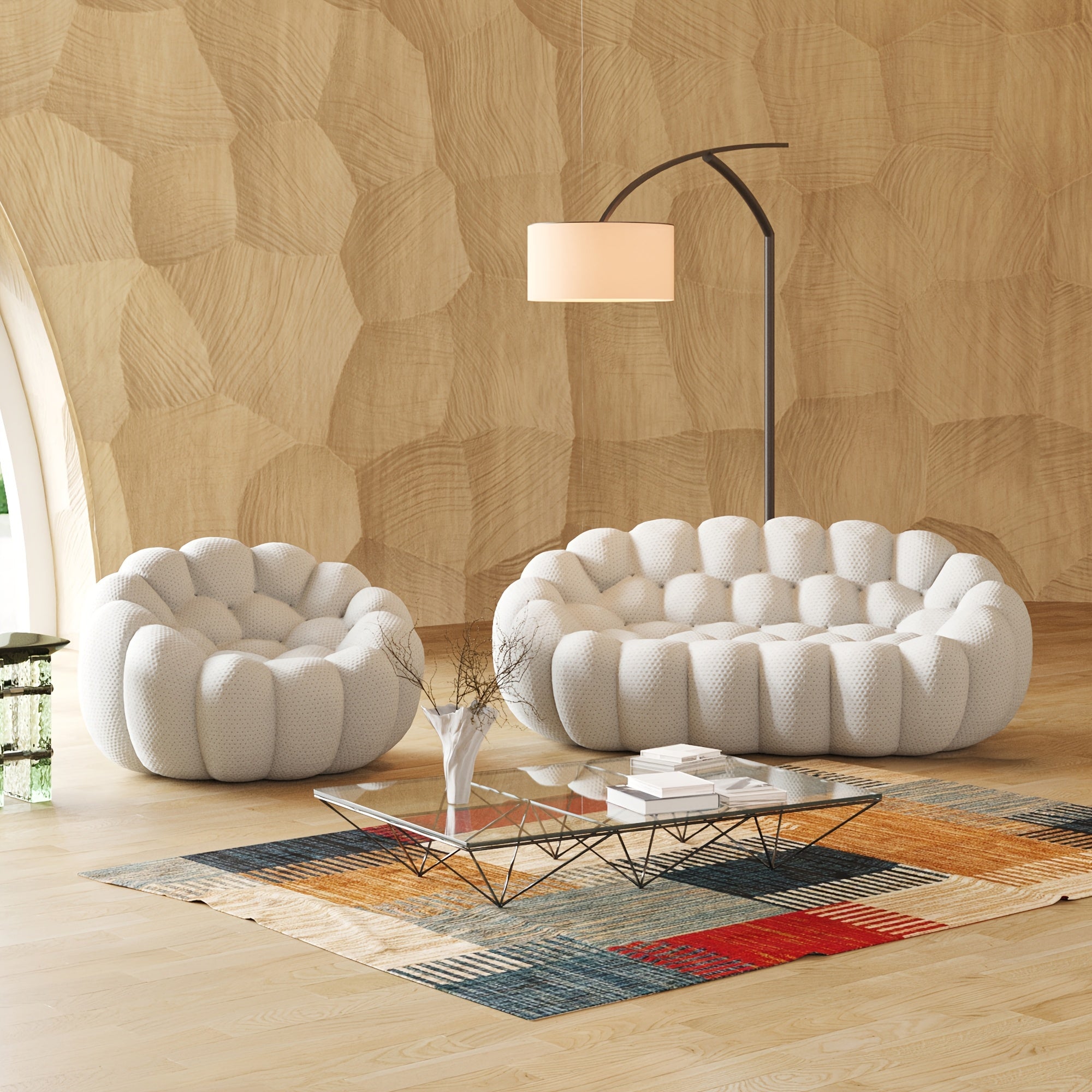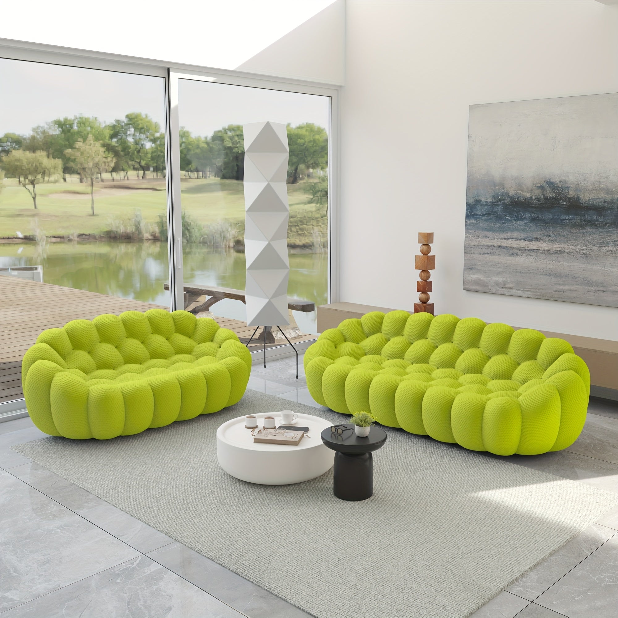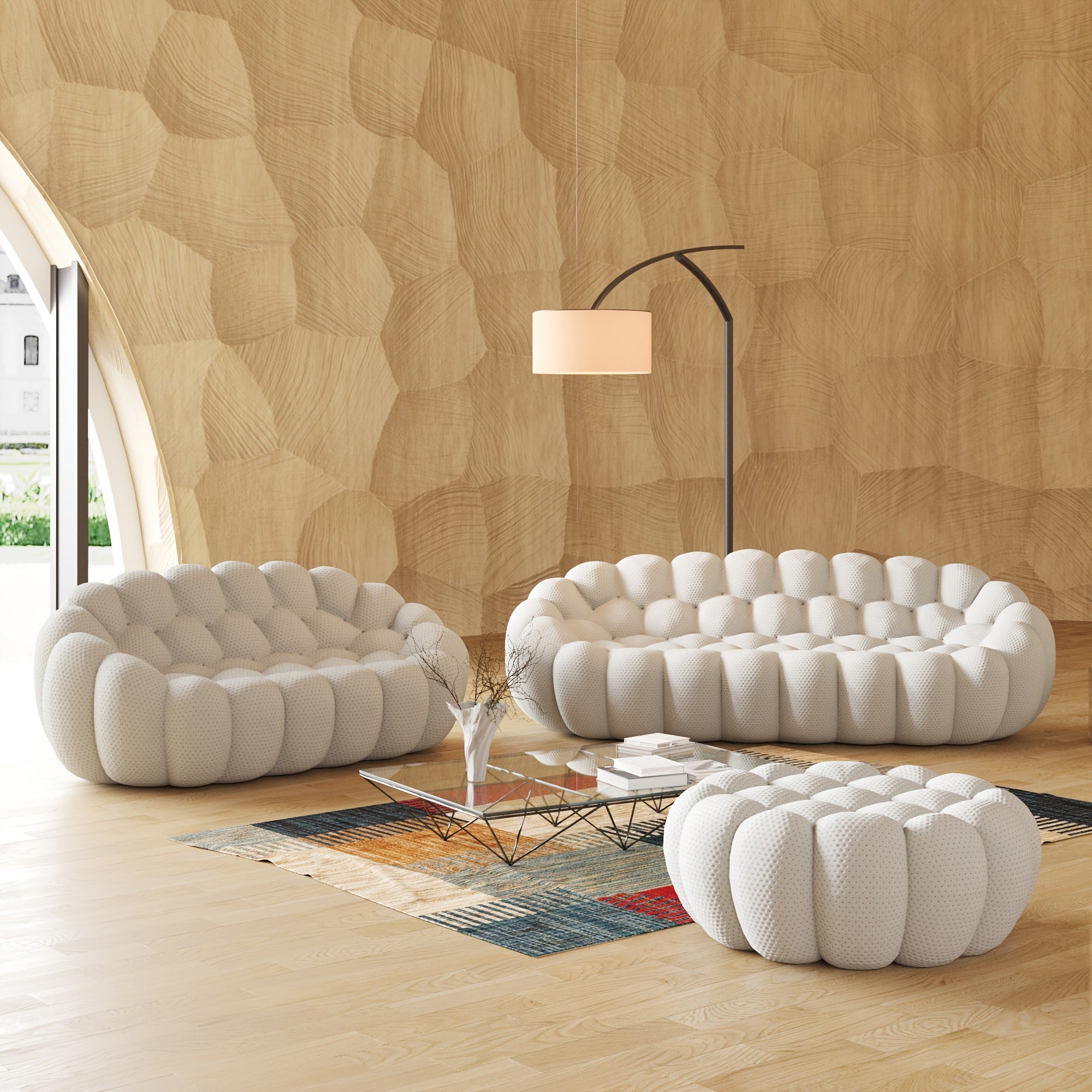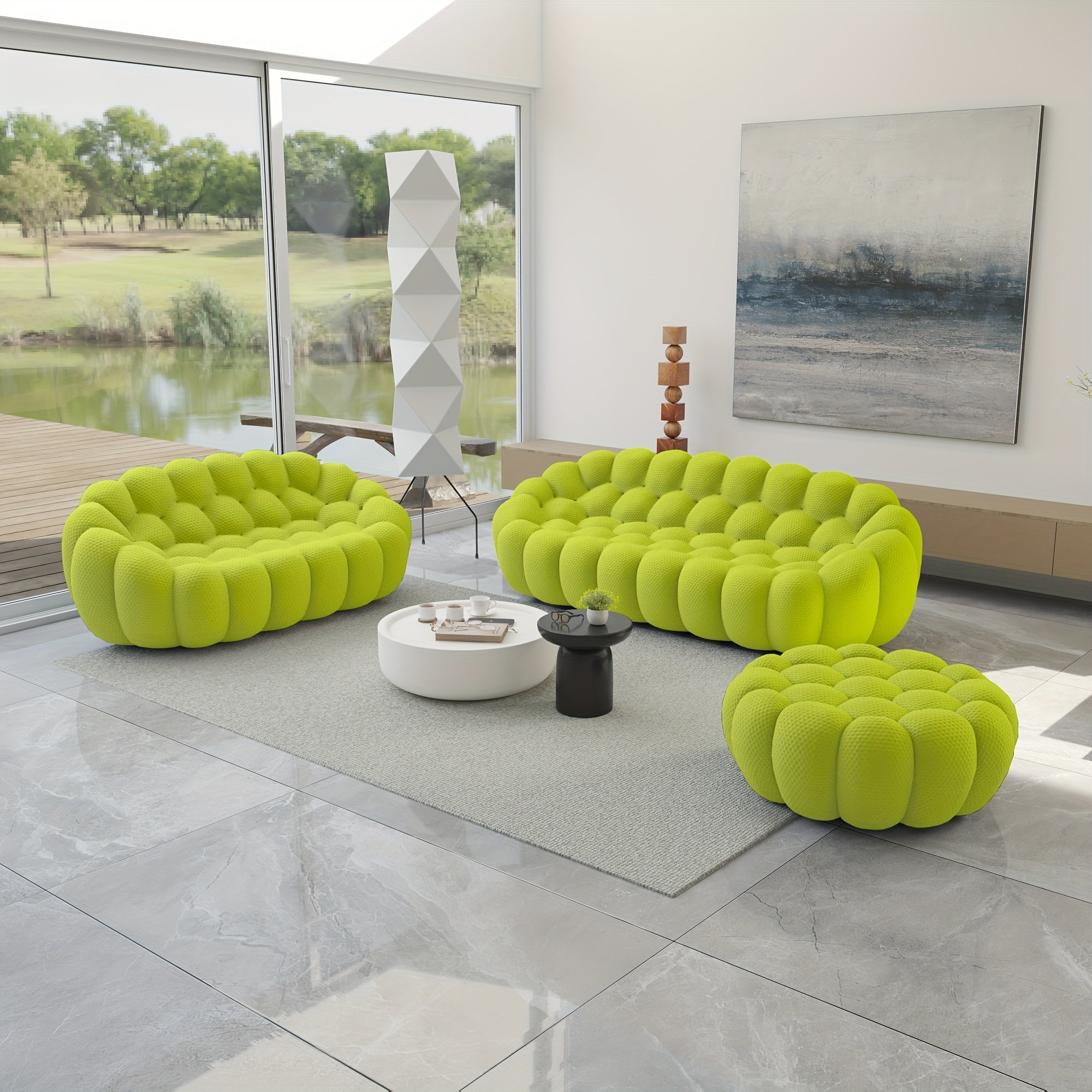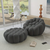 Modern Oversized Bean Bag Sofa with Ottoman - 3D Knitted Fabric, Orange, Football-Shaped Design, No Assembly Required, 700 lbs Load Capacity, Perfect for Contemporary Living Rooms, Sofa for Living Room