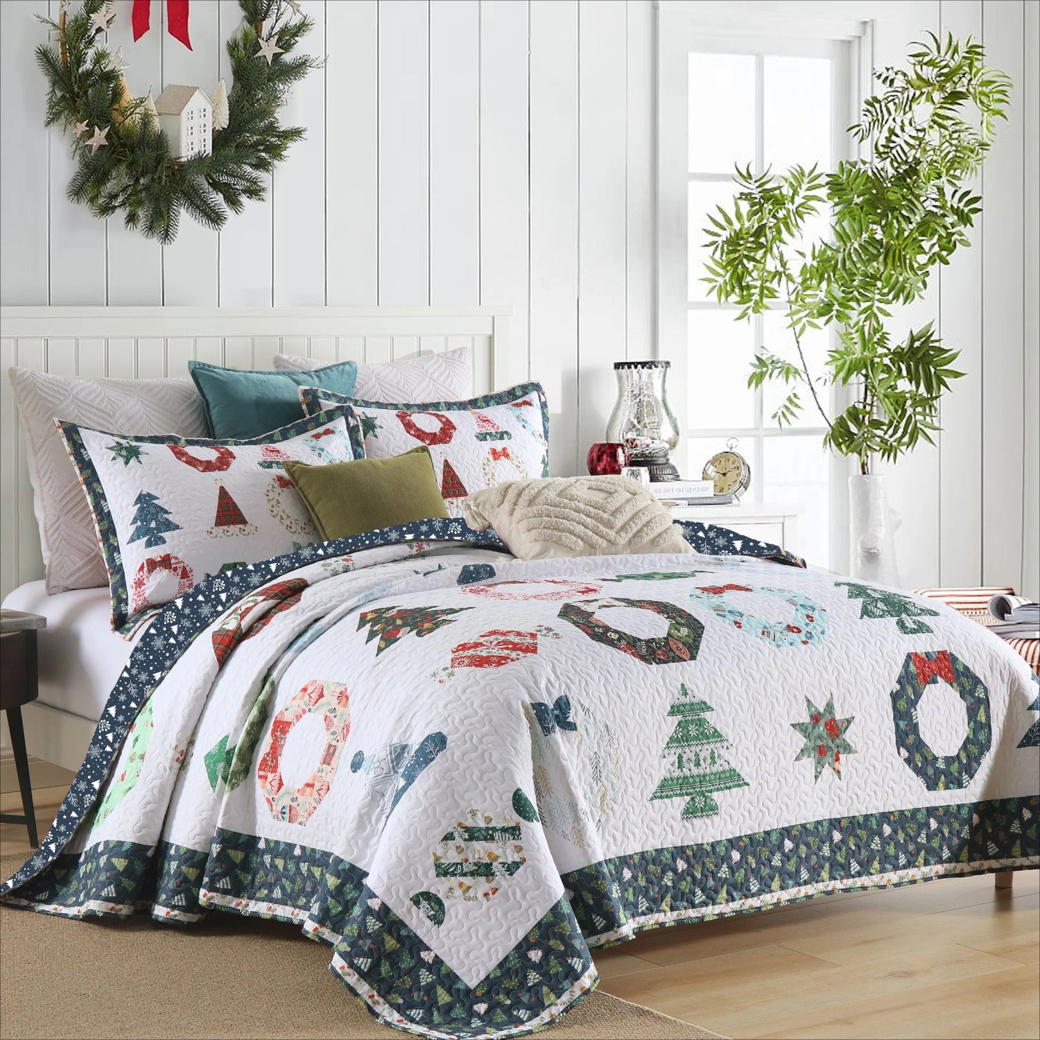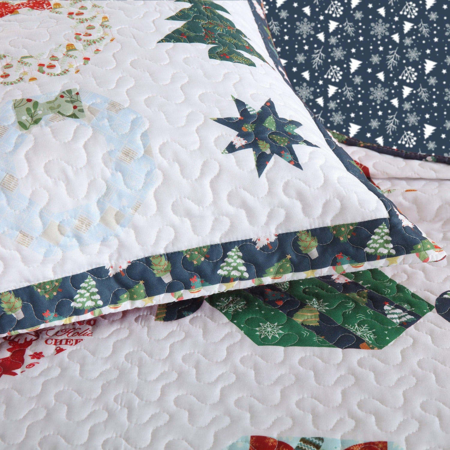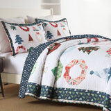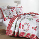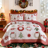 3 PCS Winter Christmas Quilt Bedspread Set - Holiday Bedding Set with Festive Christmas Patterns Including Trees, Wreaths & Candies, Soft Polyester Quilt for Bedroom Decor, Multi - Use As Bed Coverlet\u002FAC Quilt\u002FSofa Blanket, Ideal for Christmas S