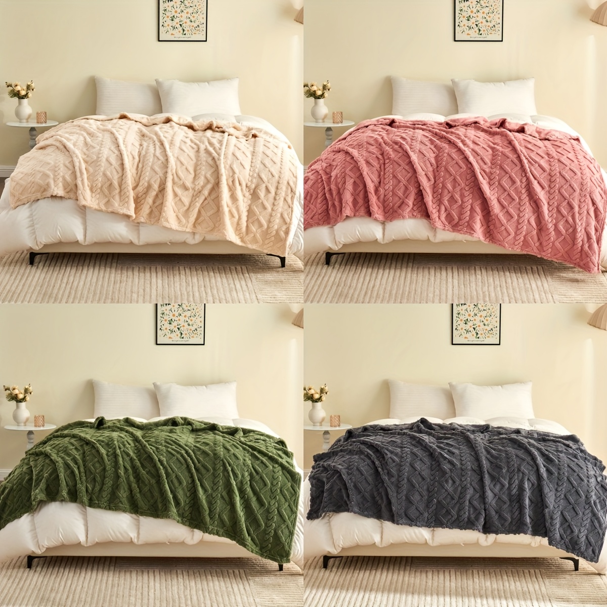 Ultra-Soft Diamond Jacquard Brushed Fleece - Cozy, Thick Plush With 3D Design | Versatile For Bed, Couch, Travel | Machine Washable | All-Season Comfort, Air Conditioning, Flannel, Multifunctional